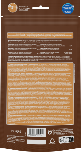 Kauspaß und Zahnpflege in einem, die Dokas Donuts mit Rinderhaut und Hühnerbrustfilet. Knackig und bissfest für intensives Kauen. Durch einen speziellen Wirkstoffkomplex kann zudem die Bildung von... Mehr lesen