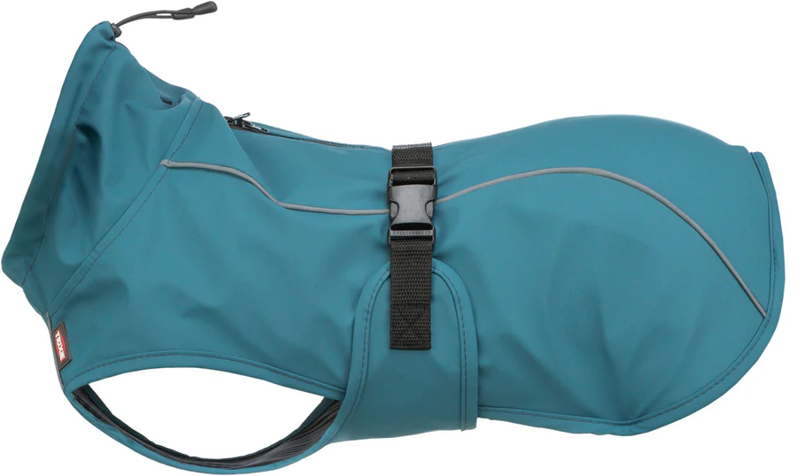 Polyurethan/Polyester mit zwei wasserdichten Reißverschlüssen zum Anleinen an Halsband bzw. Geschirr windundurchlässig reflektierende Elemente mit Tunnelzug am Kragen Bauchgurt mit... Mehr lesen